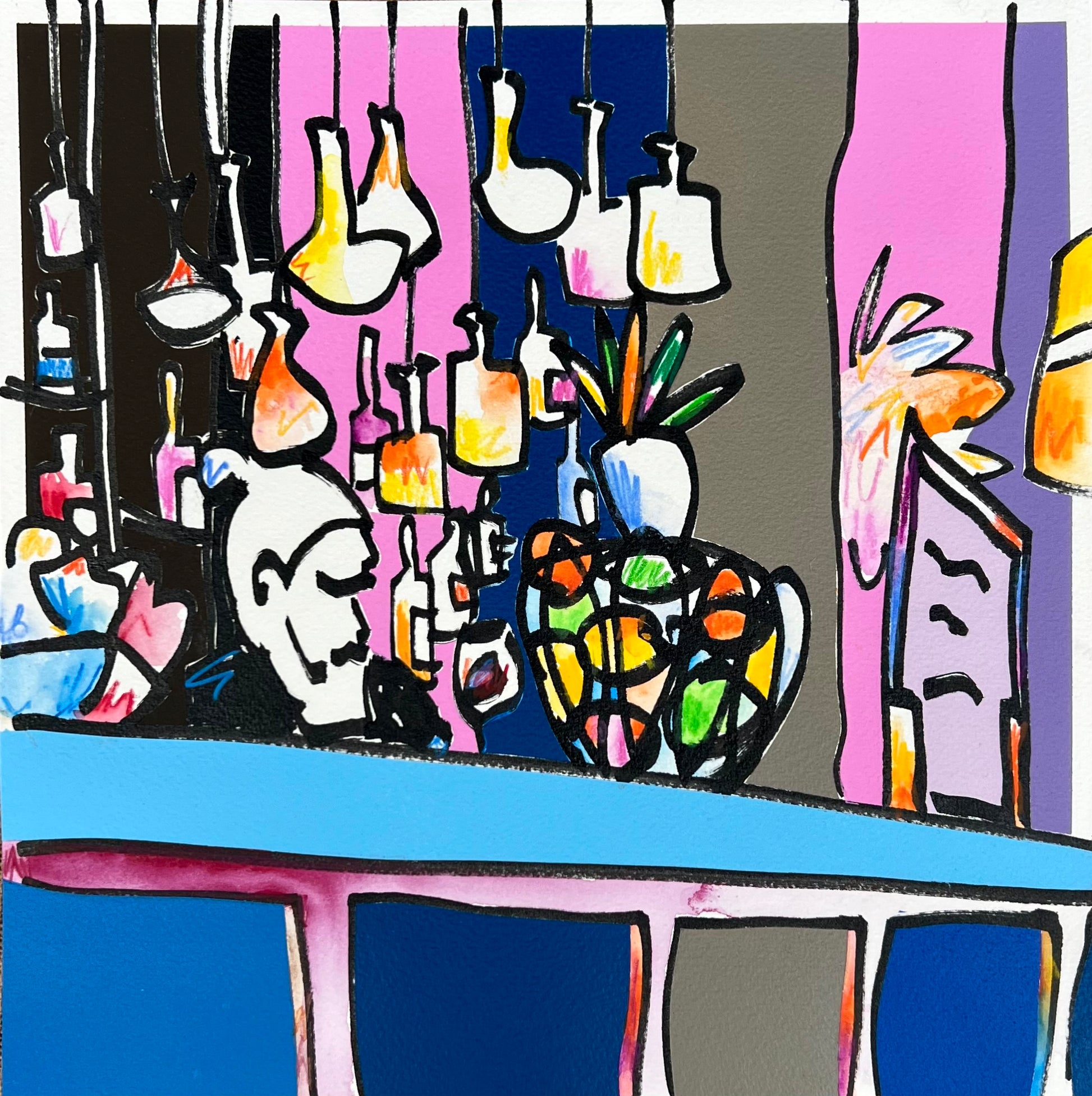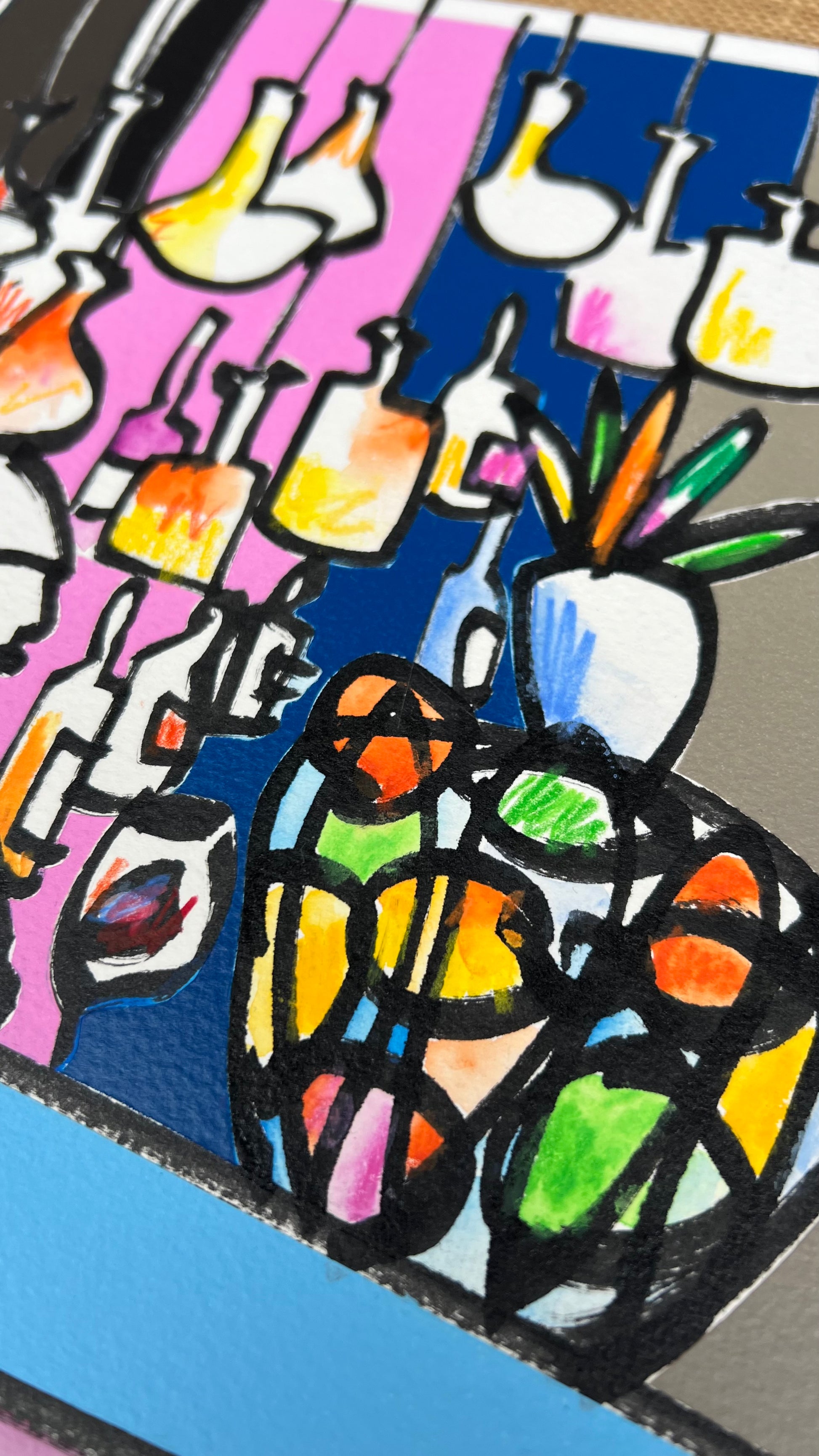 Pennarelli ad olio, matite acquerellabili, spray su carta 100%cotone 300g/m