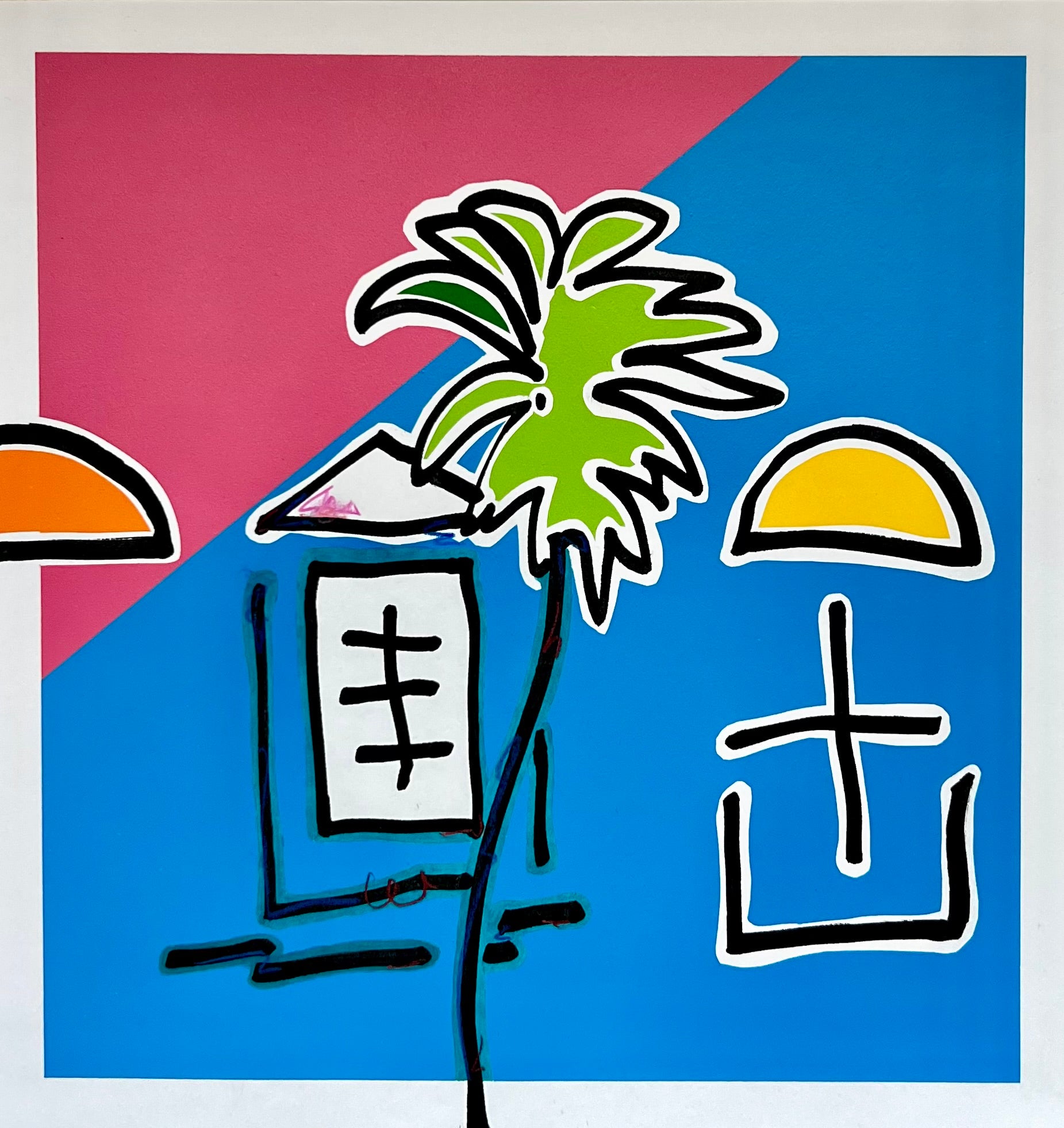Pennarelli ad olio, matite acquerellabili, spray su carta Fabriano 180g/m