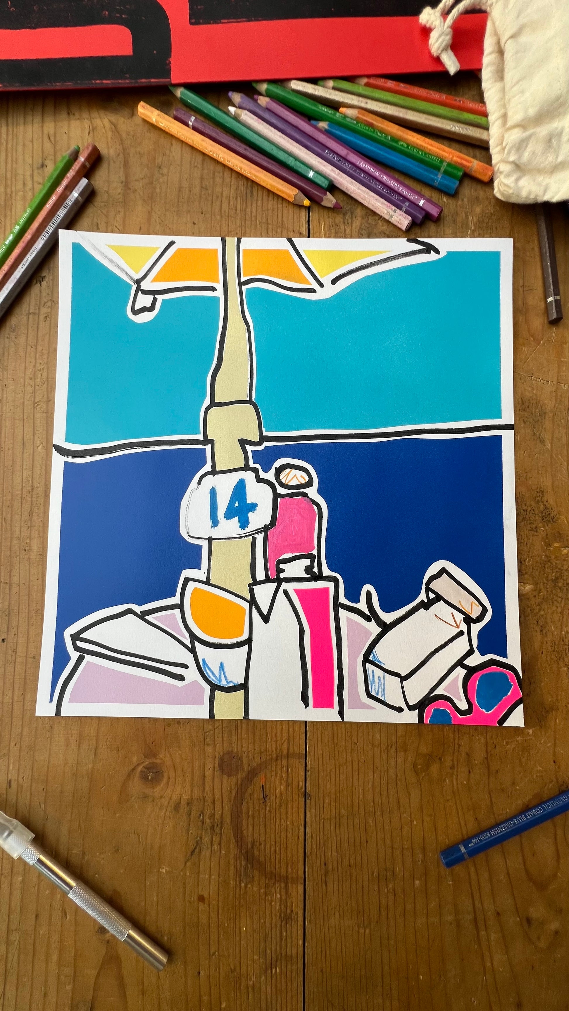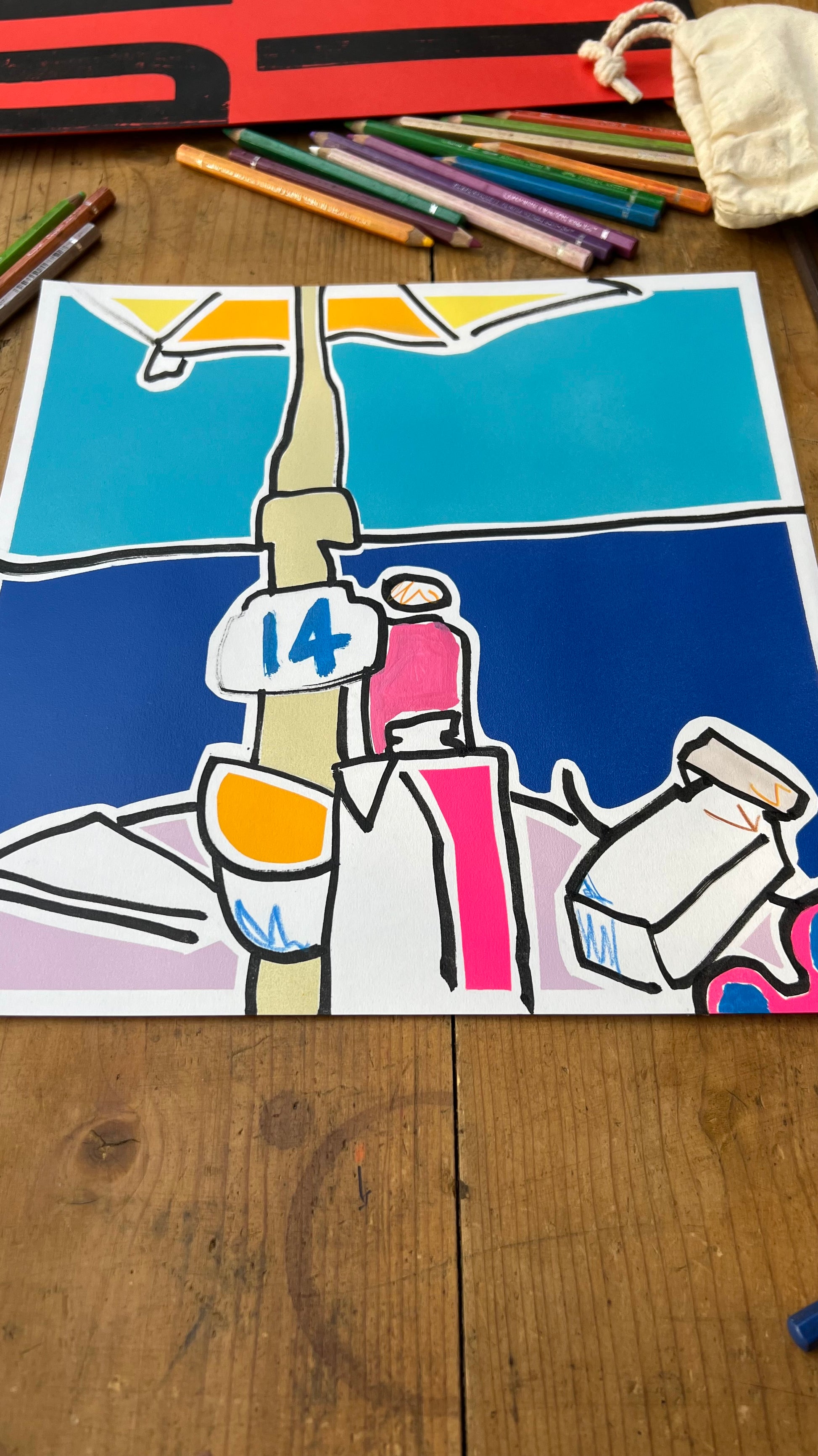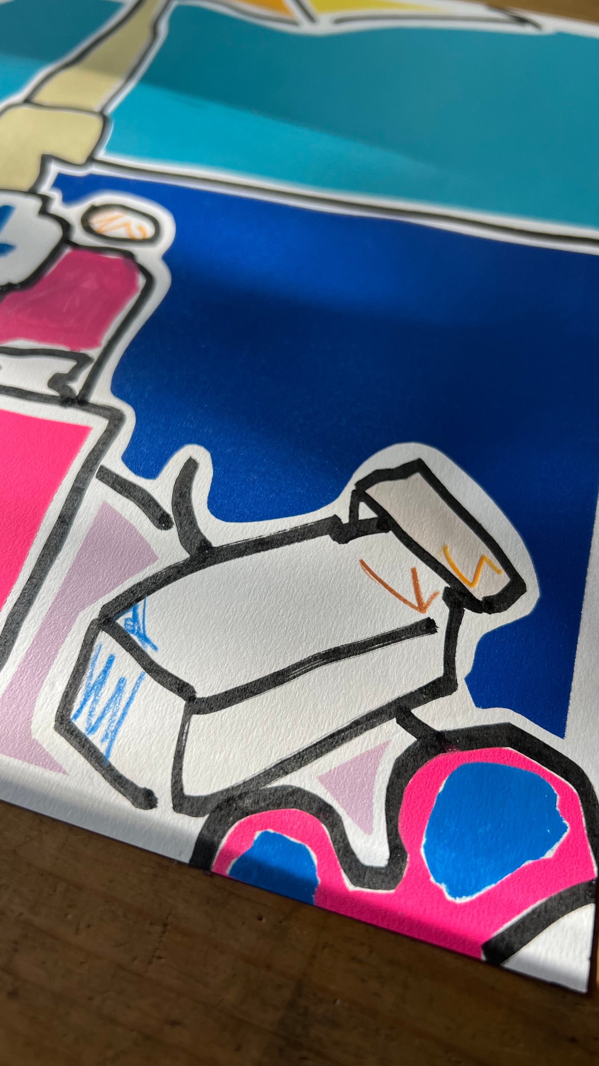 Pennarelli ad olio, matite acquerellabili, spray paint su carta Fabriano 180g/m