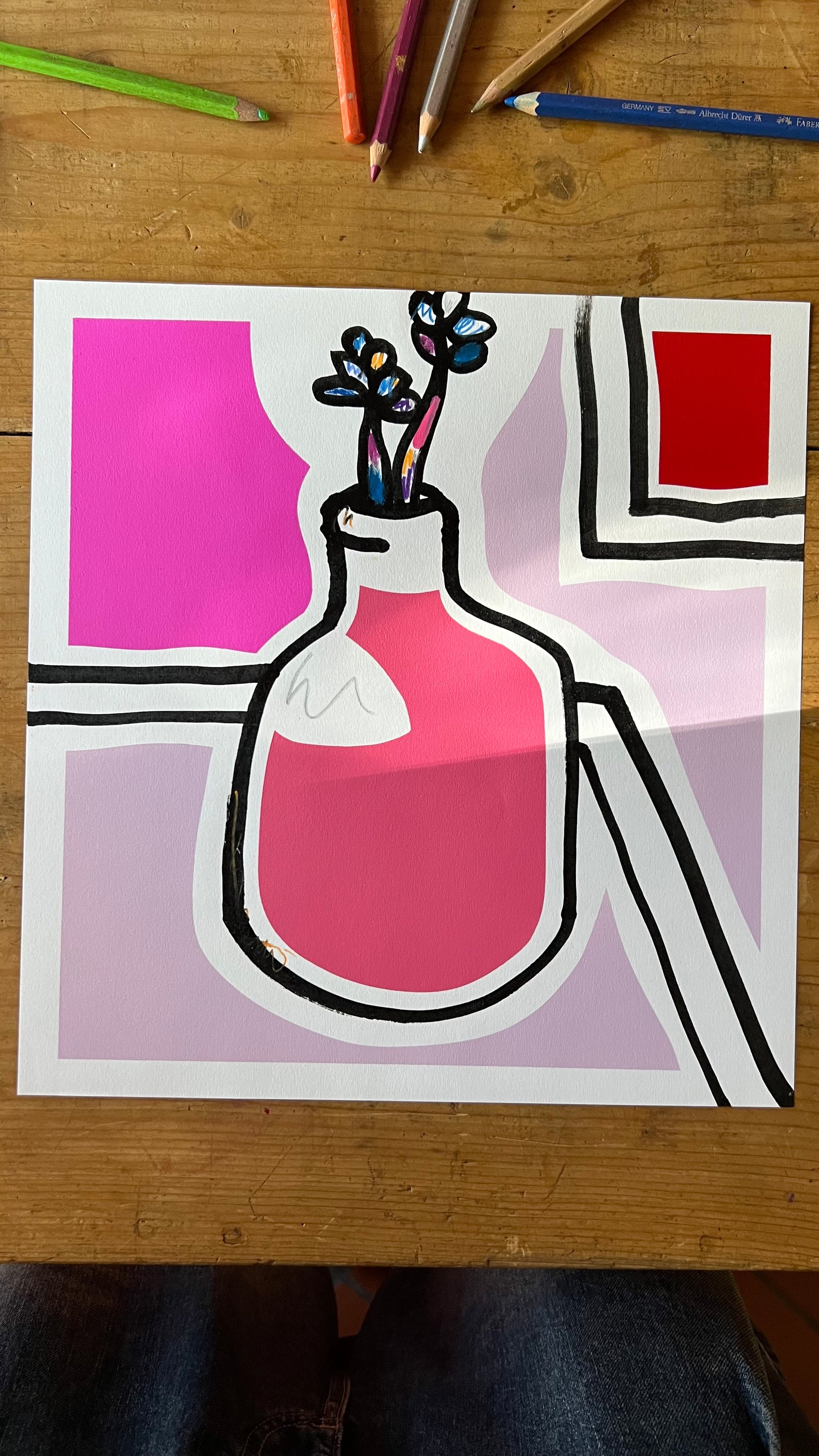 Pennarelli ad olio, matite acquerellabili, spray su carta Fabriano 180g/m